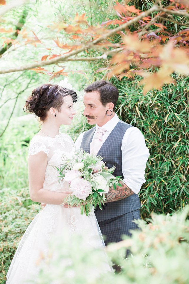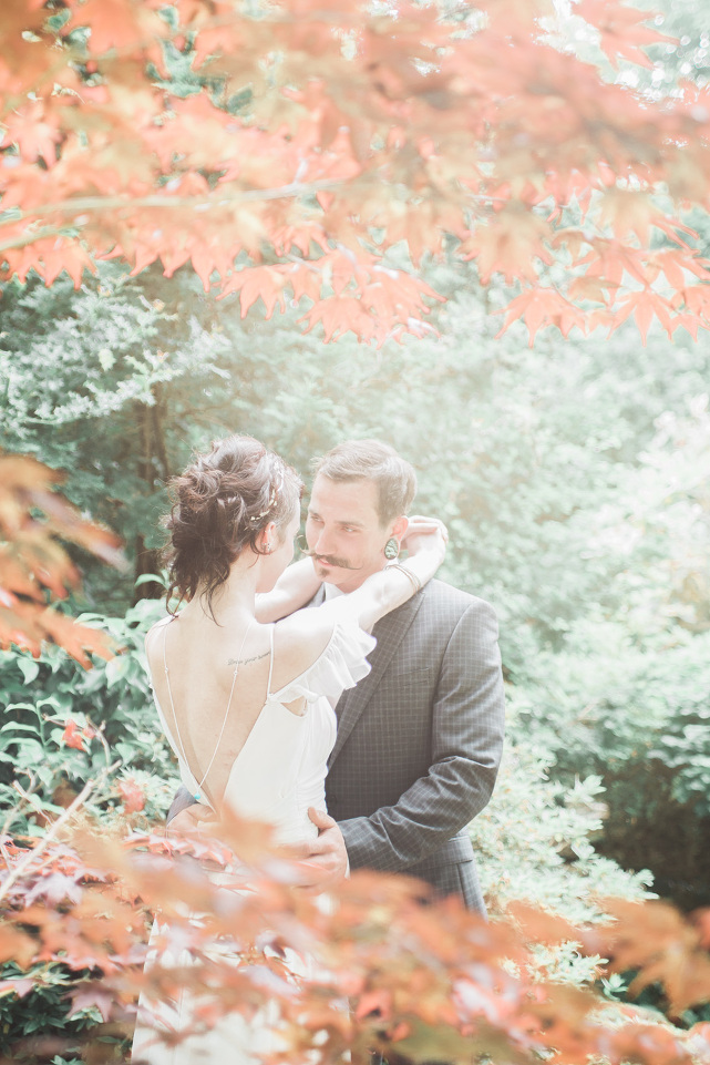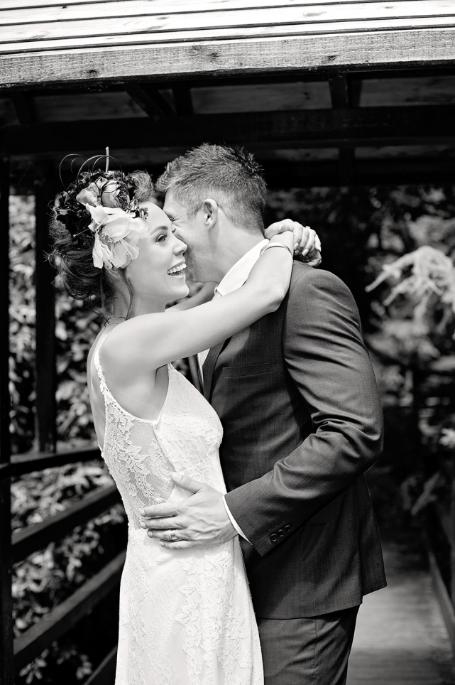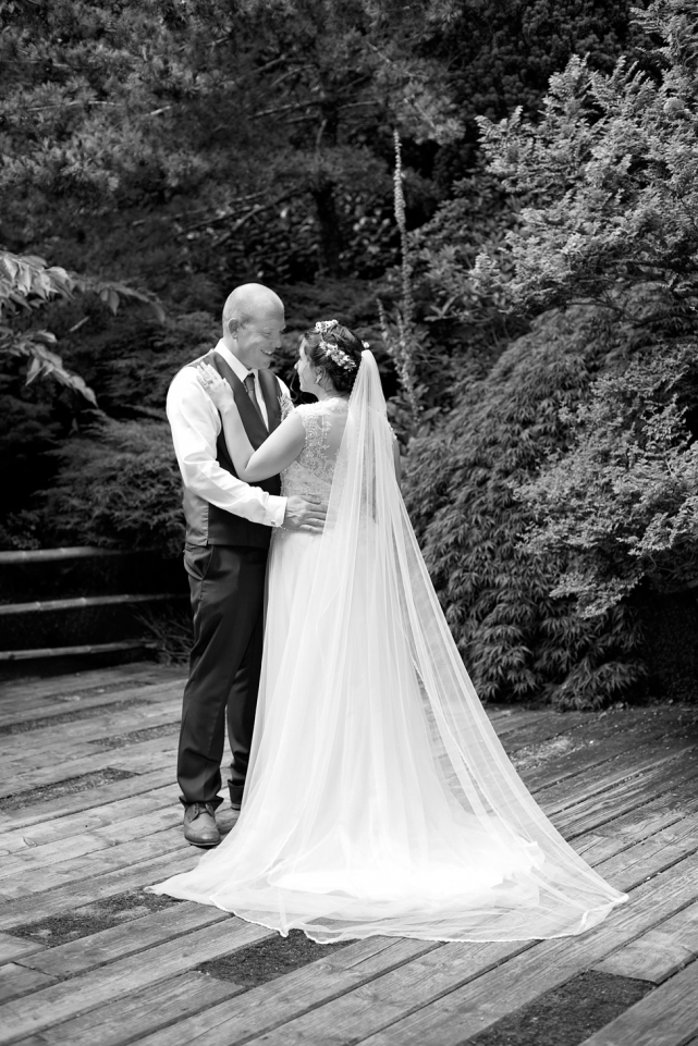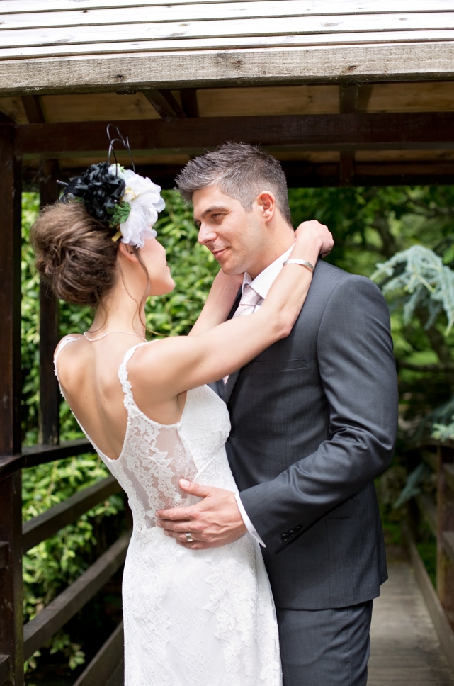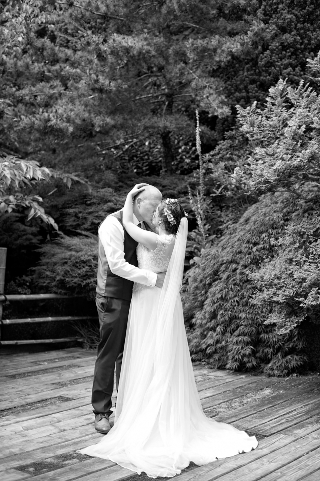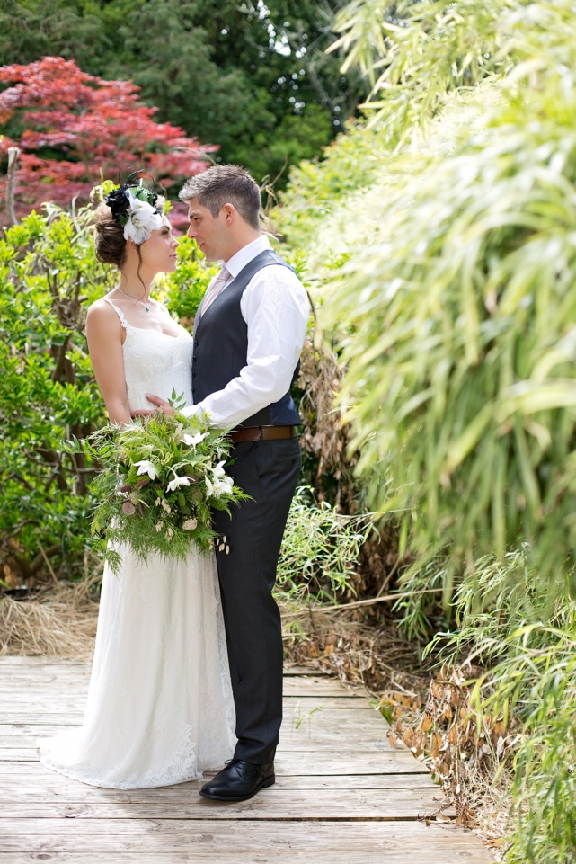 Shot in The Japanese Garden in Cornwall at sunset as the light changed from bright to glowing. The couple were amazing and incredibly emotive to capture. The pair both train in acrobatics and as tempting as it was to have Jamie throw Bethany around, we decided not to risk the beautiful dresses (Provided courtesy of The Bridal House of Cornwall).