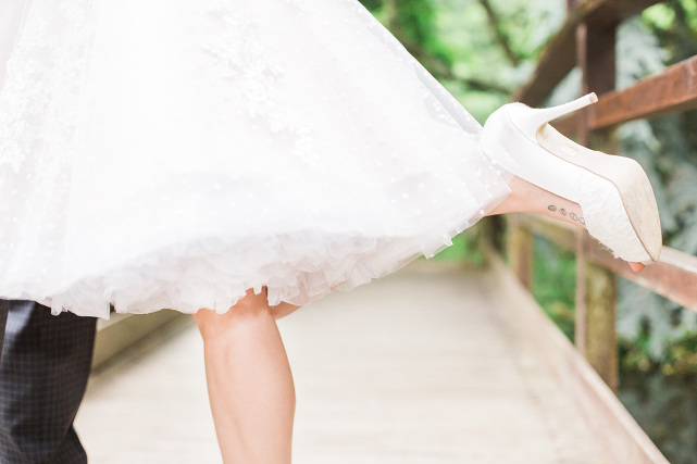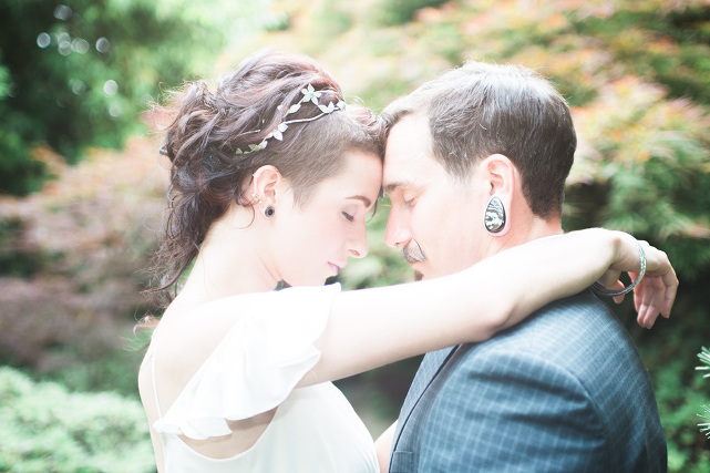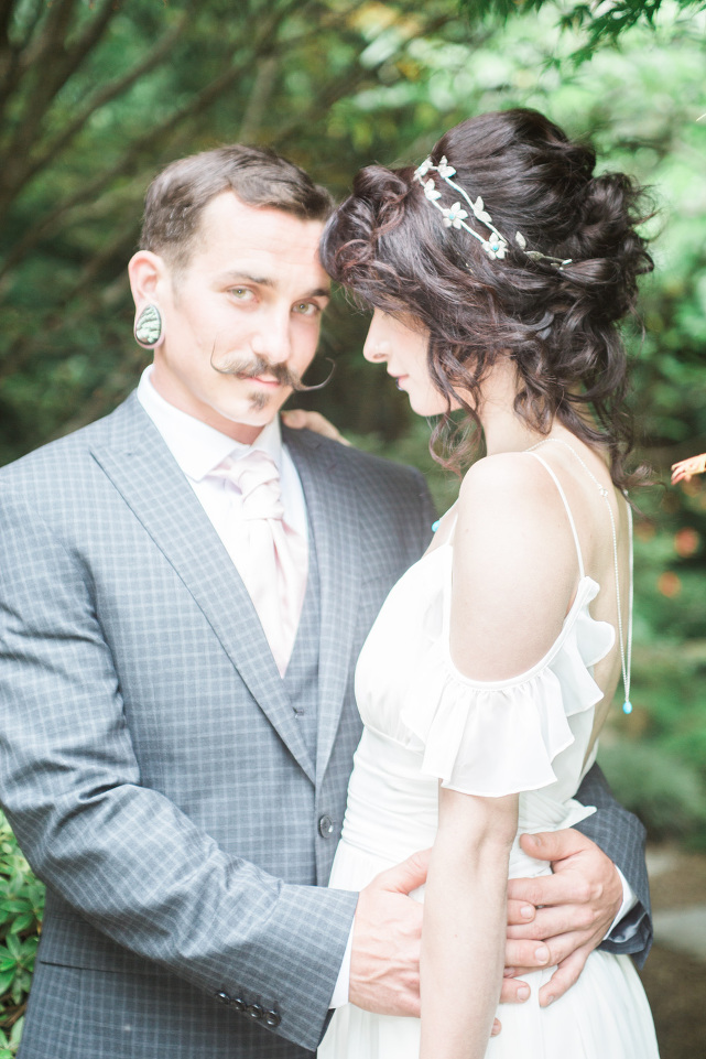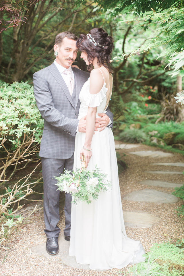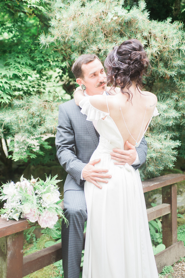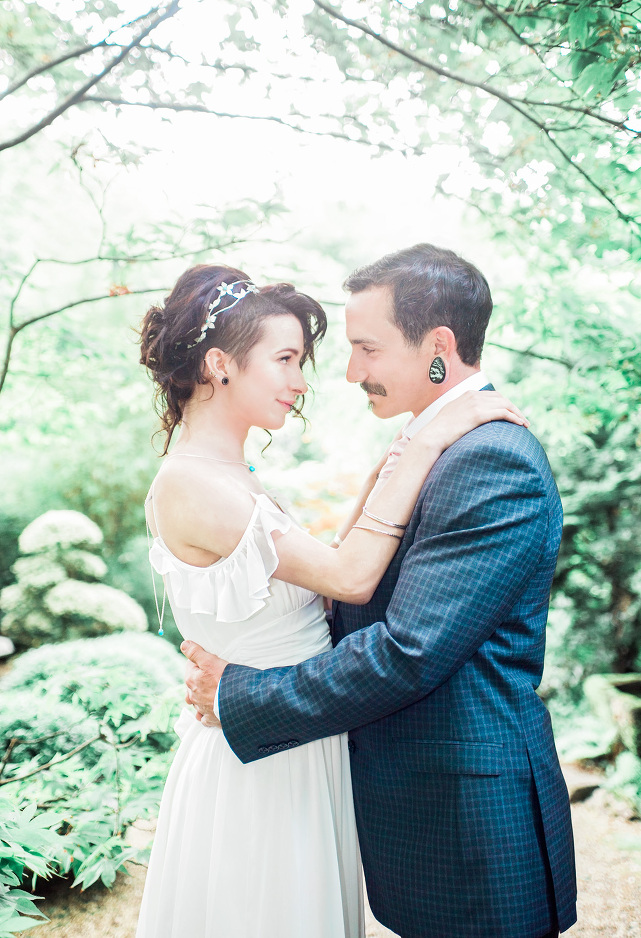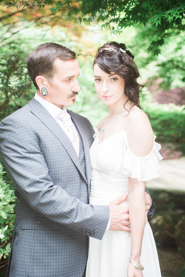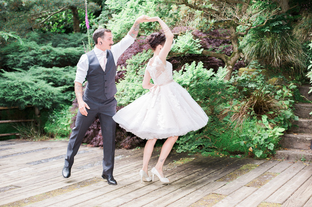 Shot in The Japanese Garden in Cornwall at sunset as the light changed from bright to glowing. The couple were amazing and incredibly emotive to capture. The pair both train in acrobatics and as tempting as it was to have Jamie throw Bethany around, we decided not to risk the beautiful dresses (Provided courtesy of The Bridal House of Cornwall).