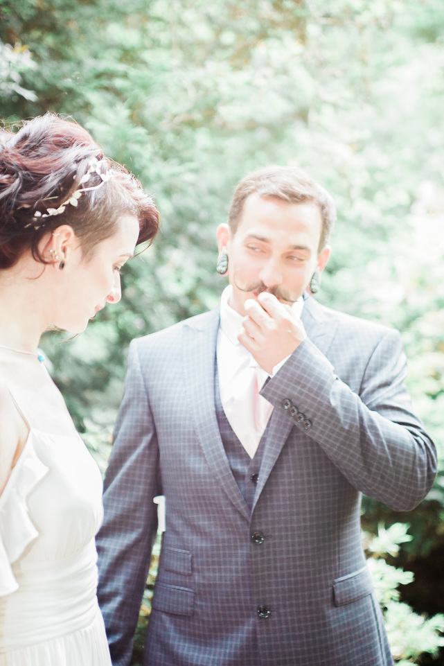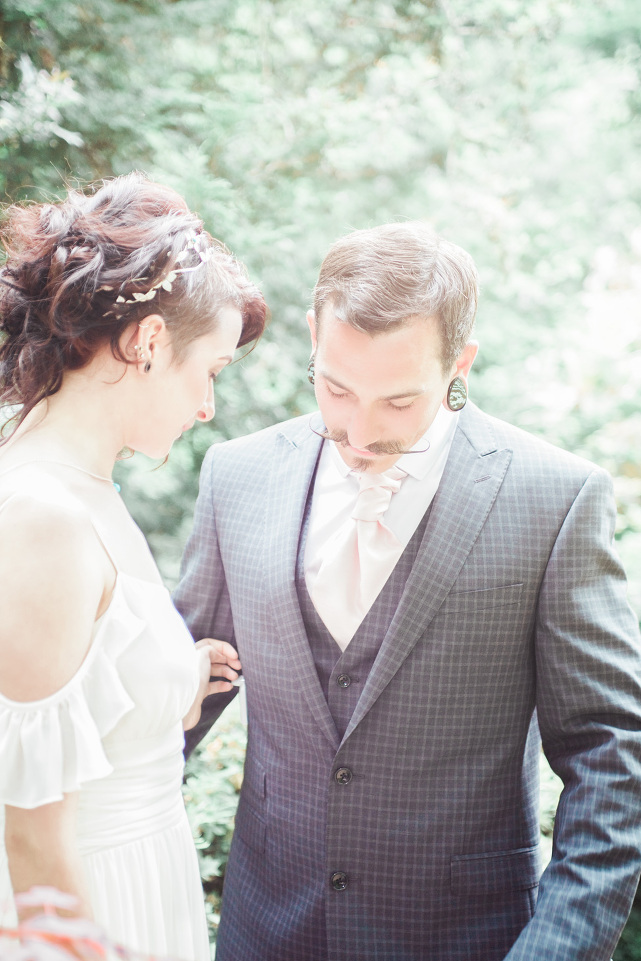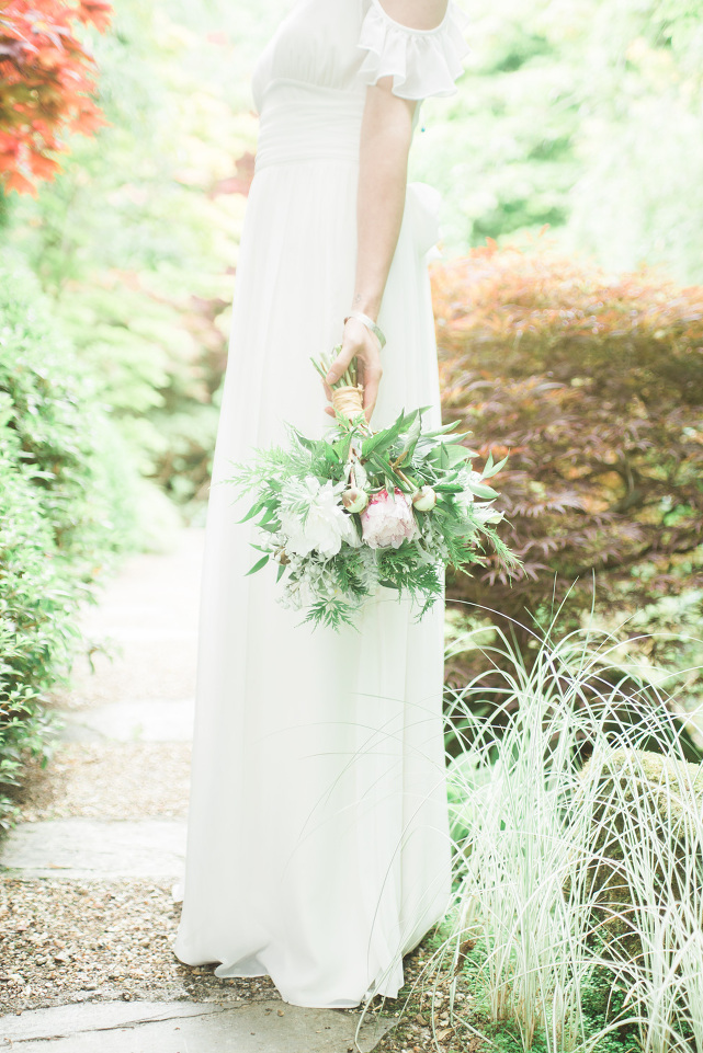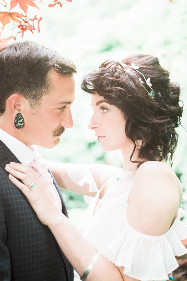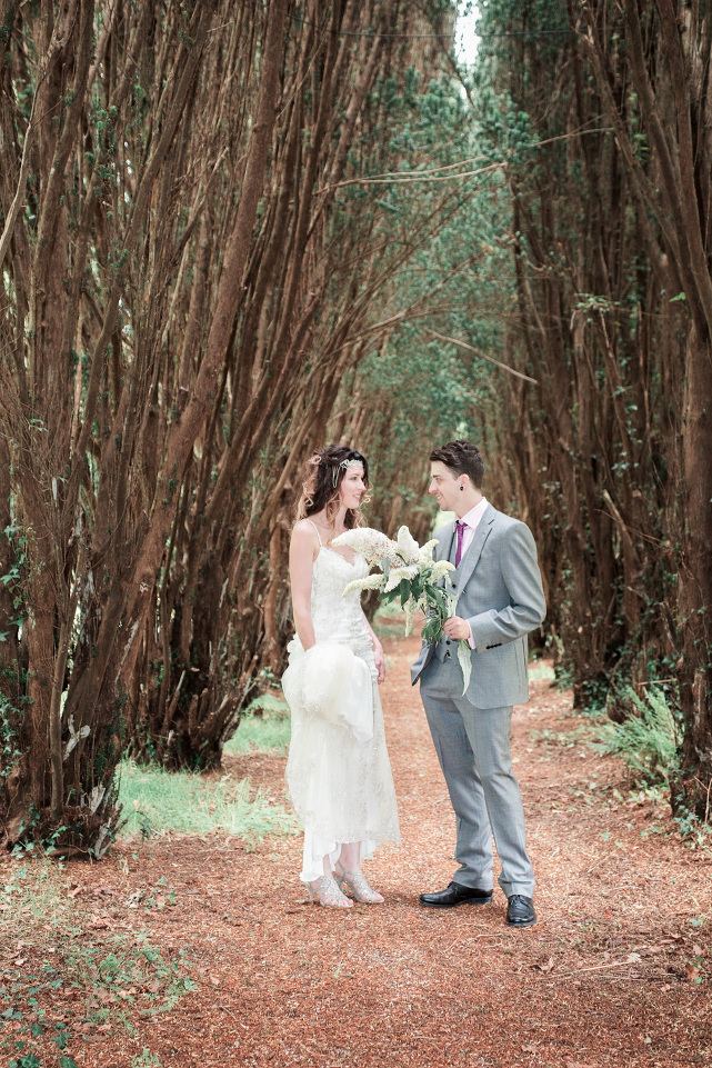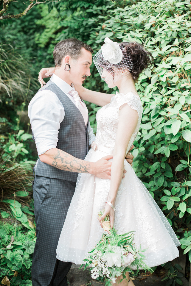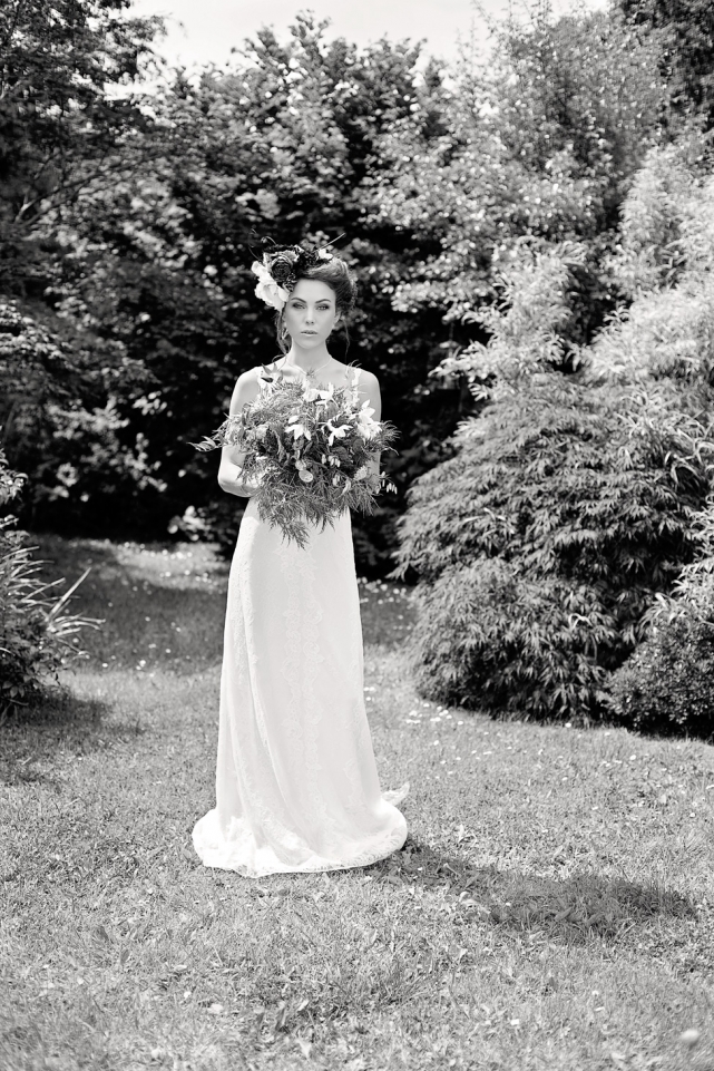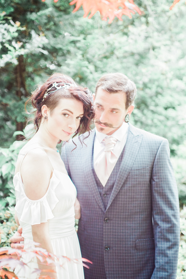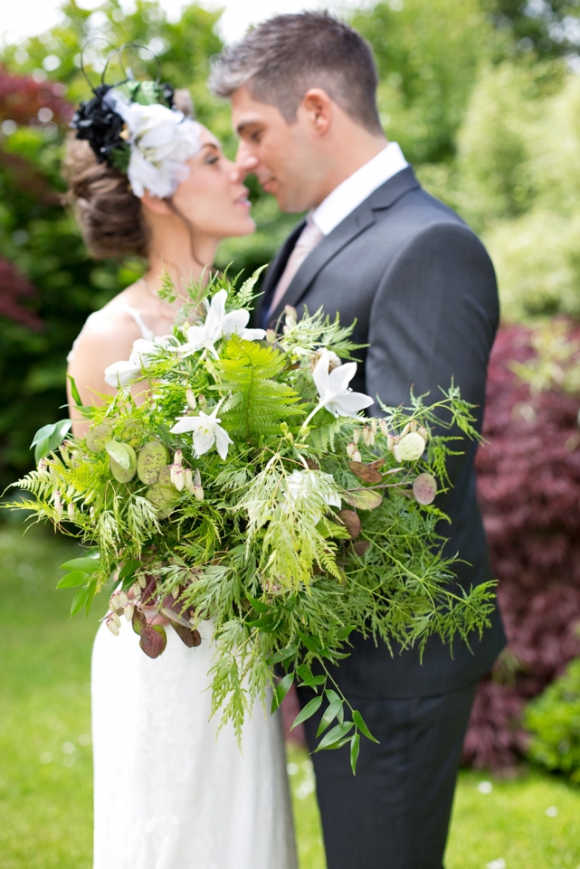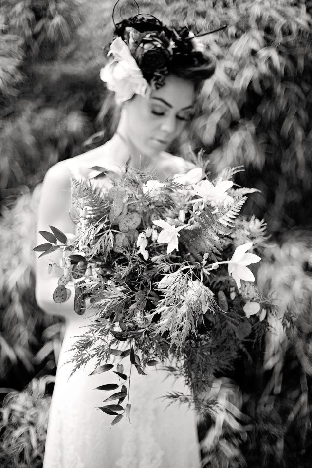 I wanted a bright, almost overexposed, aesthetic for this shoot, allowing the couple to look etherial and other-worldly. The colouring was challenging for this edit due to the greens and reds bouncing from the plants on to the couple, but the lighting really worked with the look we were going for.